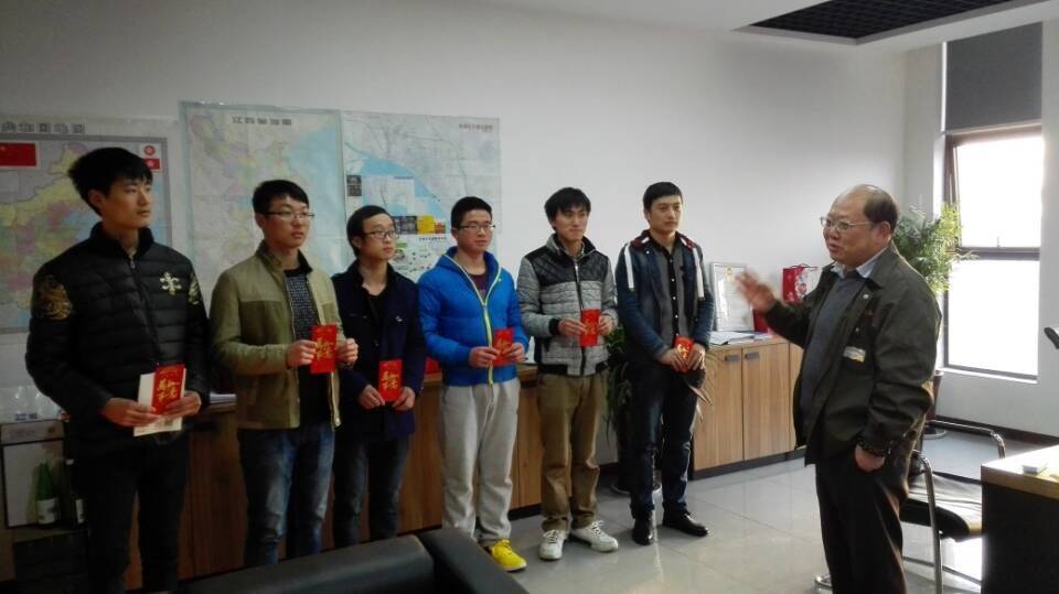 接著王總為全體員工派發新年紅包,很多學生因為距離遠來晚了,王總在副總辦公室為他們派發紅包,學生都表示會為鴻泰貢獻自己的力量,和鴻泰一起不斷進步。